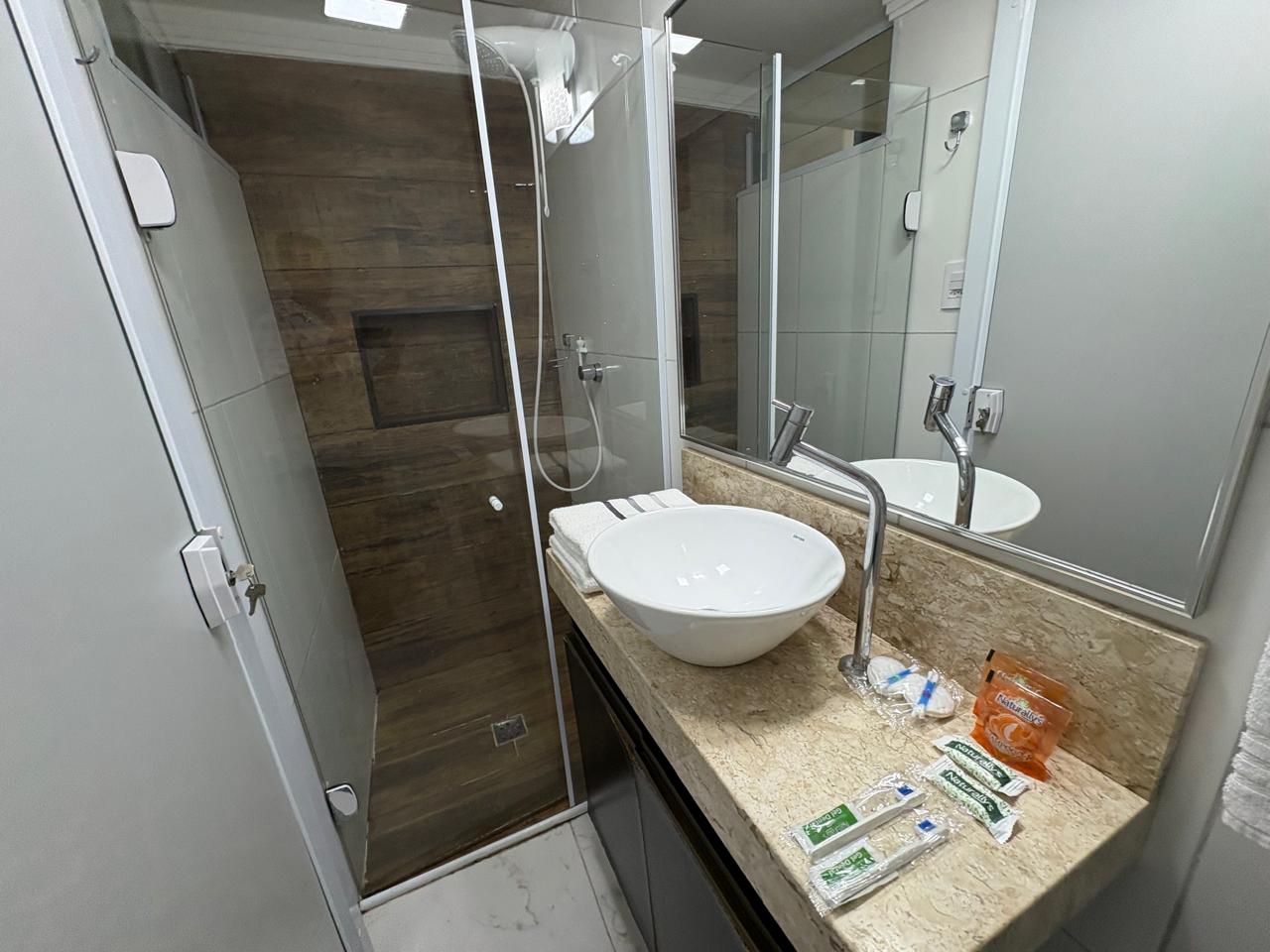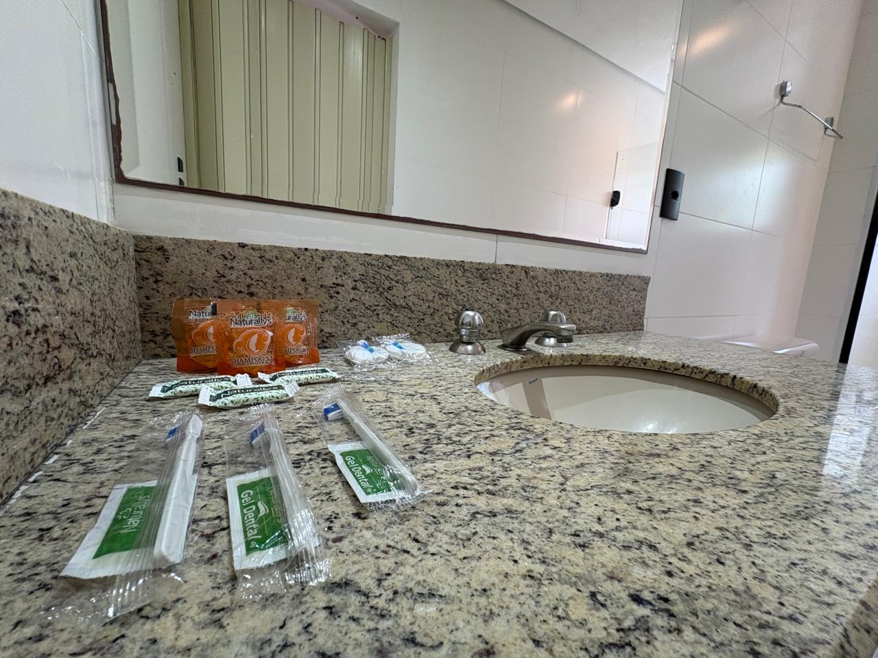• Kit higiene, papel higiênico, sacos de descarte, etc; estão disponíveis na recepção